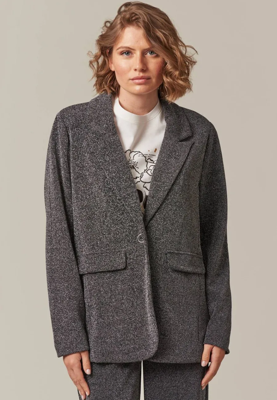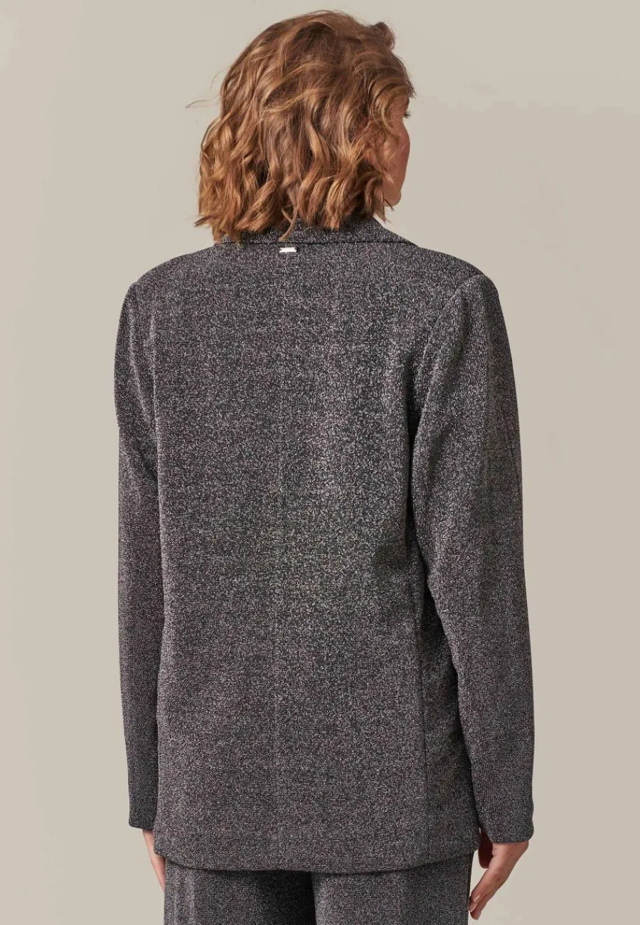 Apportez du glamour à votre dressing avec le blazer ESTRELLA ! Fabriqué dans un mélange de 83 % nylon, 14 % de fibres métalliques et 3 % d’élasthanne, ce blazer droit en lurex scintille sous toutes les lumières, parfait pour vos soirées et événements spéciaux. Son design sophistiqué est accentué par un unique bouton qui cintrera votre taille, mettant en valeur votre silhouette avec élégance.