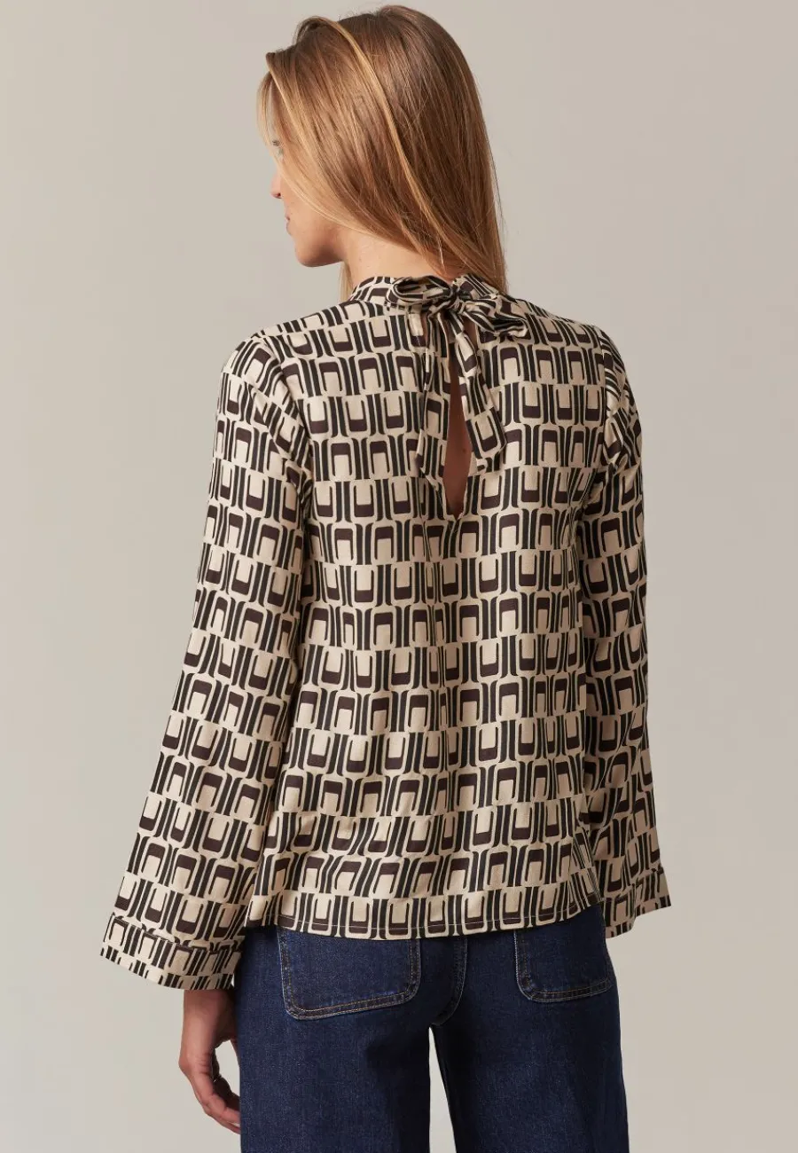Adoptez un look rétro-chic avec la blouse en viscose et motifs géométriques ESTINA , inspirée des seventies.