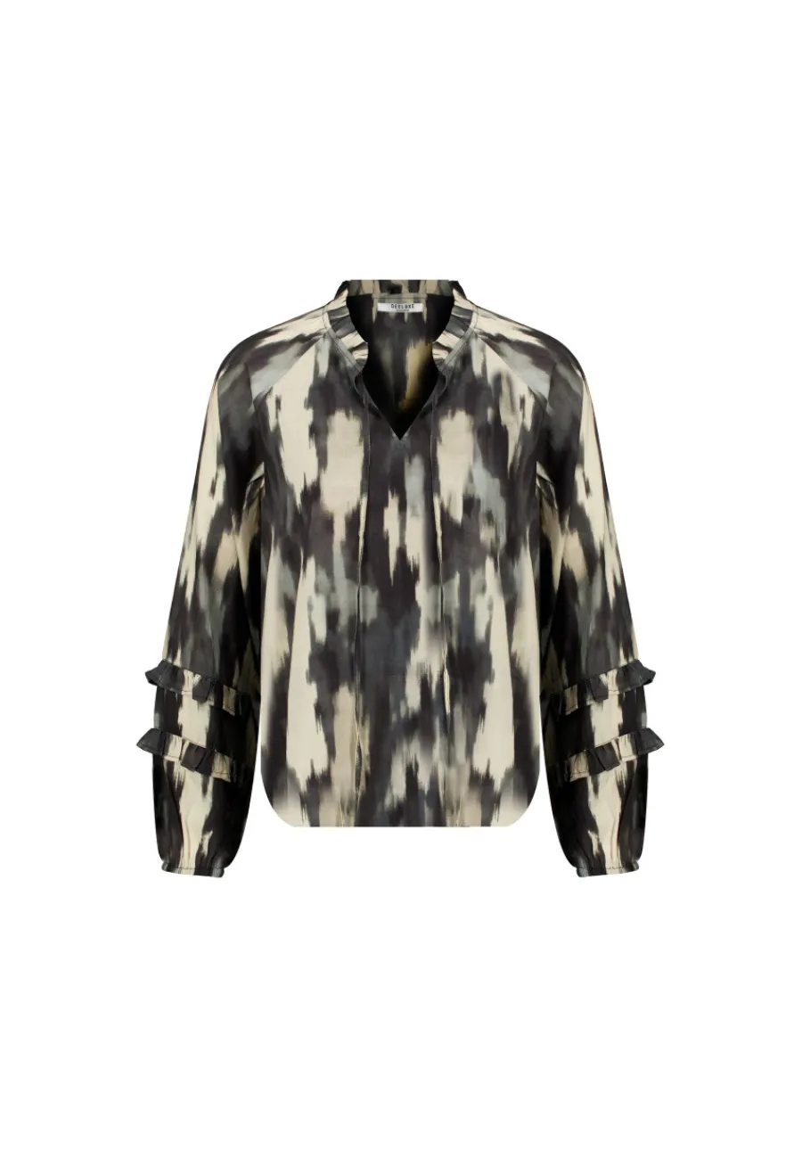 Elégante et confortable, la blouse NOELINE est confectionnée en 100% modal pour une douceur et un drapé parfaits. Son col haut volanté et les volants discrets au bas des manches ajoutent une touche féminine et sophistiquée.