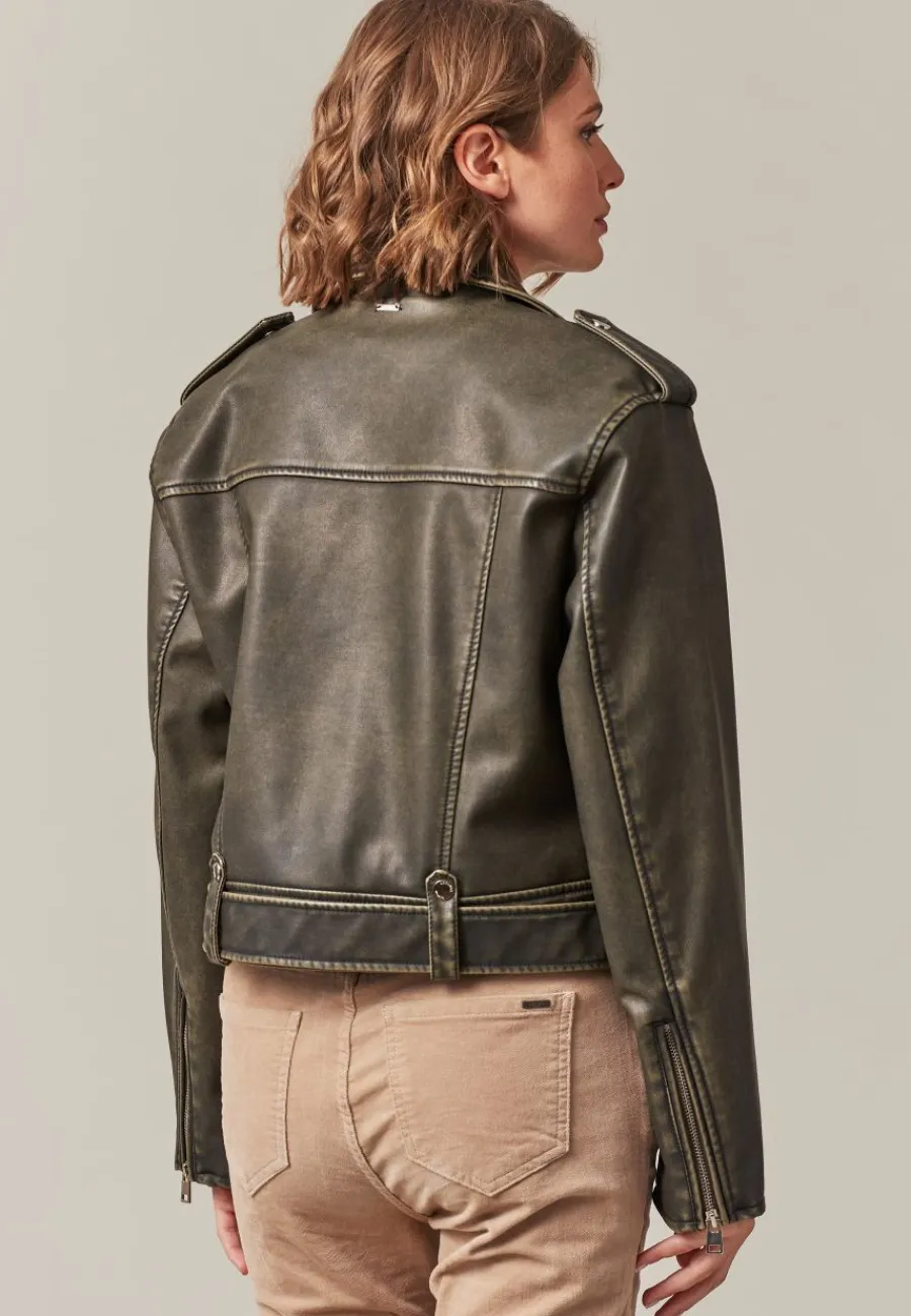 Avec son délavage Garment Dyed, ce perfecto en simili cuir offre un aspect unique et vintage, renforçant son caractère distinctif.