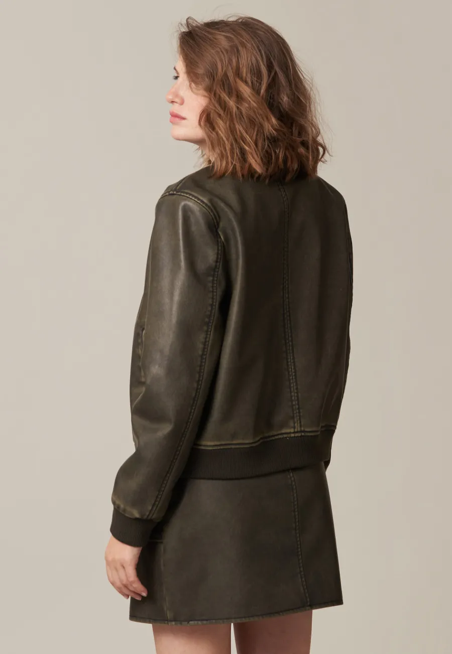Le blouson pour femme en simili-cuir LARA est un incontournable de la garde-robe féminine. Alliant style casual et praticité, ce blouson délavé se porte en toutes occasions.