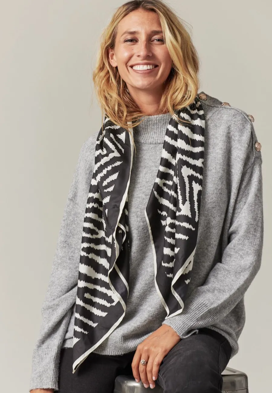 Apportez une touche sauvage et sophistiquée à votre look avec le chèche TAKIA. Ce chèche élégant et polyvalent est l’accessoire parfait pour celles qui aiment allier style et confort. Avec son imprimé animal en noir et blanc inspiré du zèbre, il ajoutera une note audacieuse et moderne à n’importe quelle tenue.
