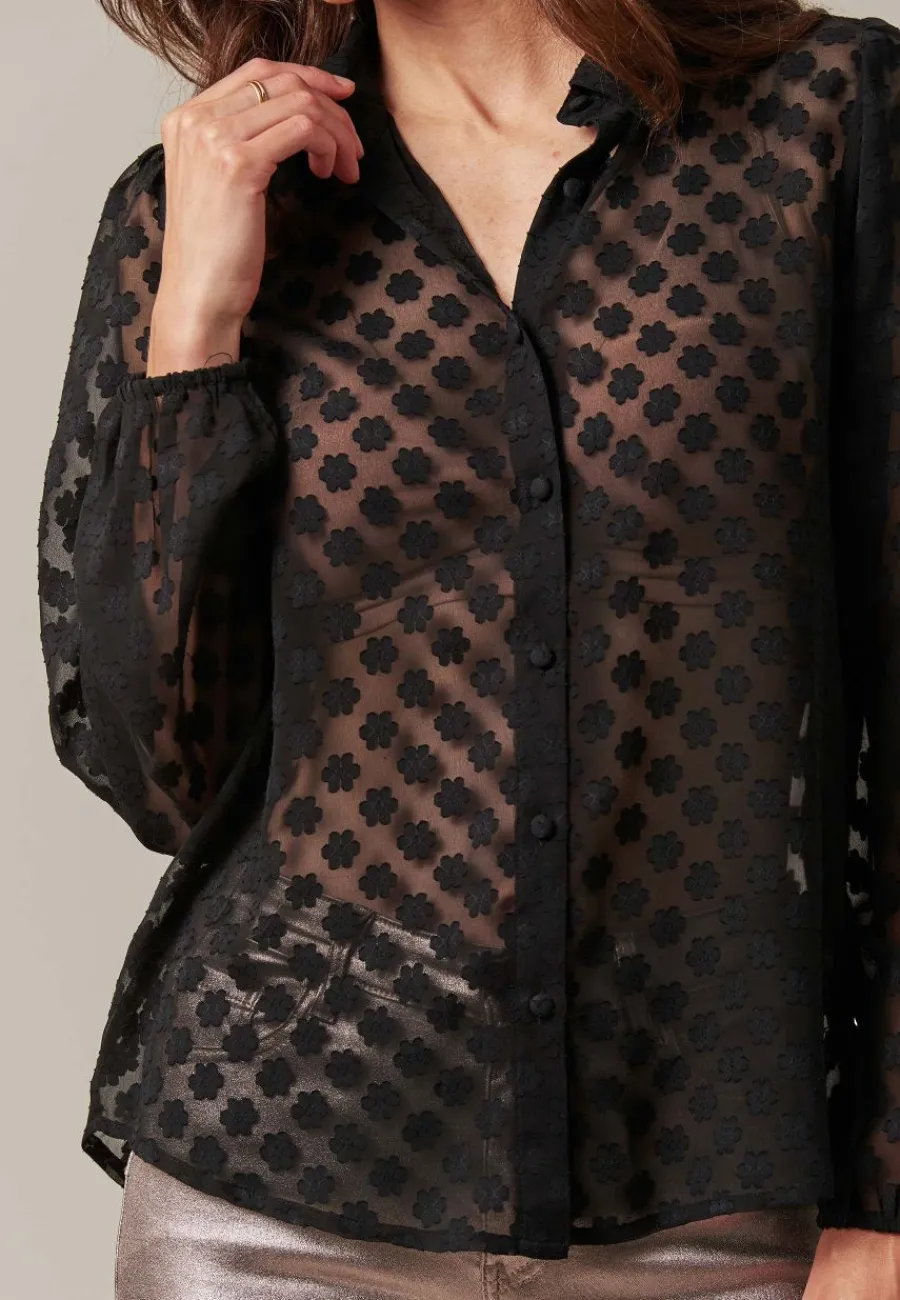 Le plumetis est un voile transparent, ici orné d’un motif floral brodé en relief. Chic et intemporelle, cette chemise révèle votre féminité. Sa texture légère et aérienne, associée à une broderie floral, apporte une dimension bohème et romantique à la tenue.