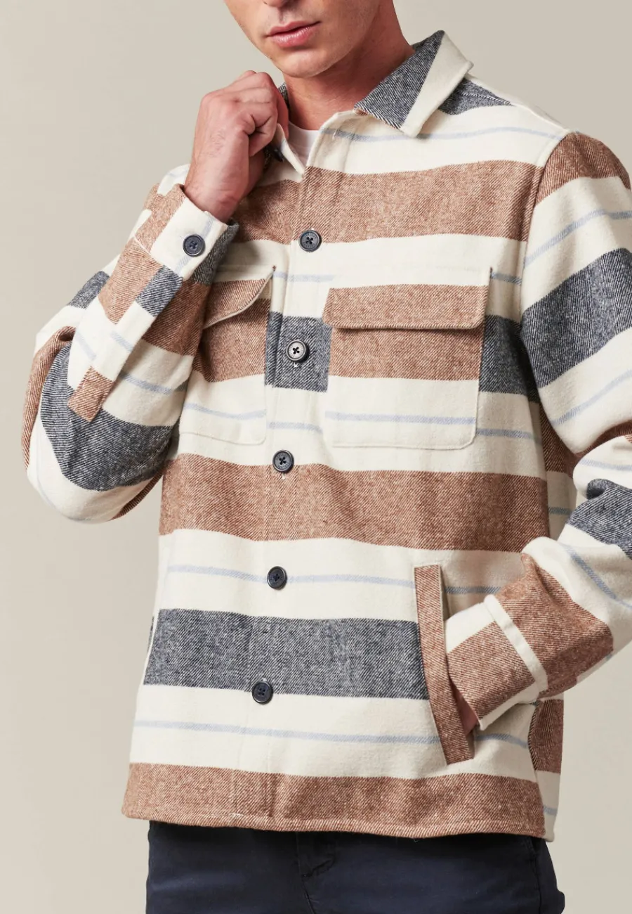 Dotée d’une fermeture à boutons et d’un motif à rayures revisité de manière contemporaine, cette surchemise se distingue par ses deux poches sur la poitrine et deux poches pour les mains, offrant à la fois style et praticité.