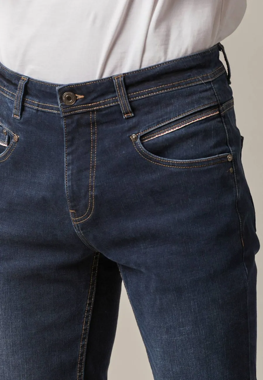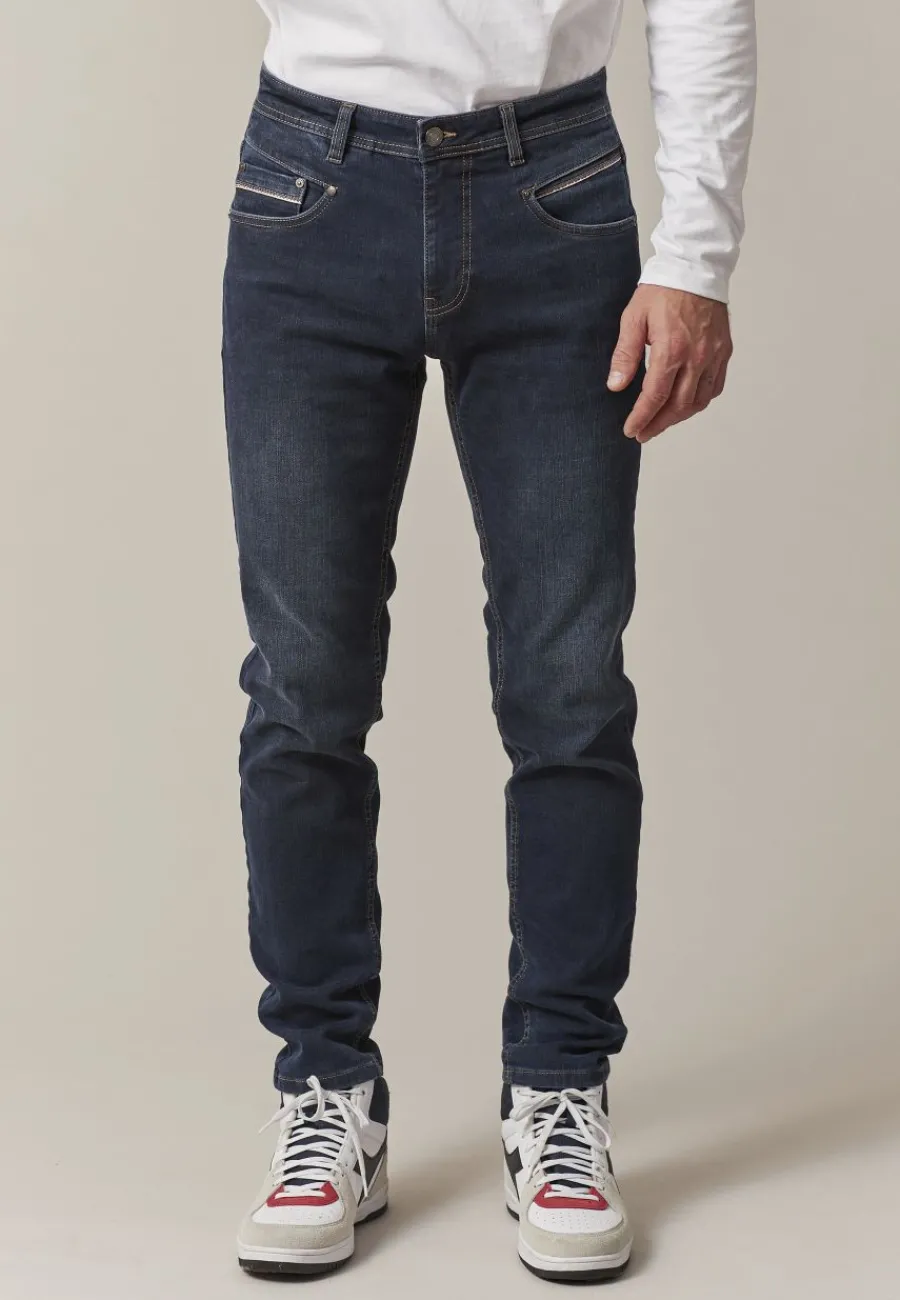 Le jean CAESAR bleu foncé délavé est un incontournable du dressing masculin, parfait pour ceux qui aiment les looks tendances. Conçu majoritairement en coton, ce modèle assure confort et durabilité.