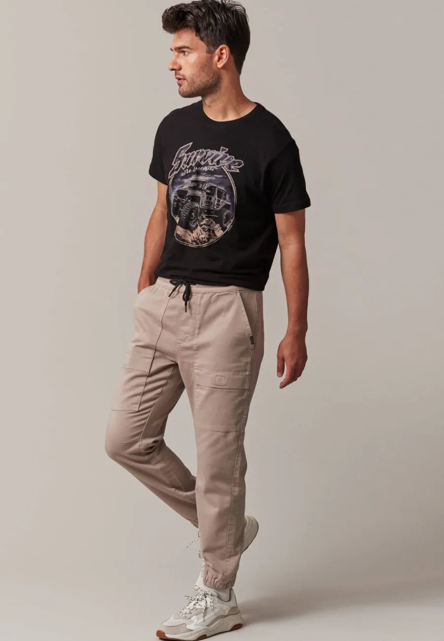 Confectionné avec 78% de coton, ce pantalon offre un confort exceptionnel tout en conservant une allure tendance. Sa coupe jogger, dotée d’un cordon à la taille et de chevilles resserrées, garantit un ajustement parfait et une grande liberté de mouvement. Les coutures inspirées du style cargo ajoutent une touche streetwear à l’ensemble.