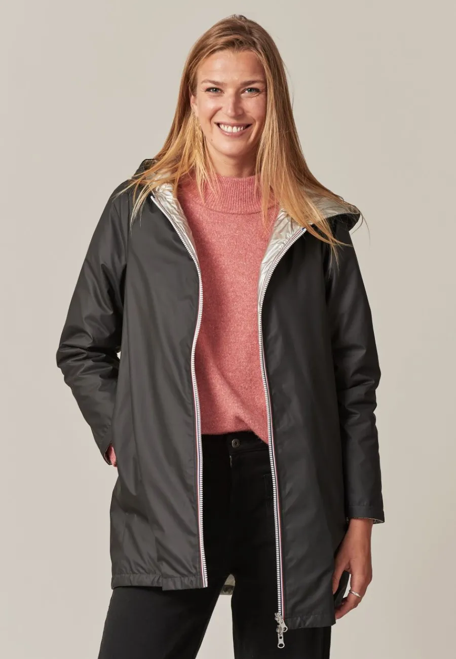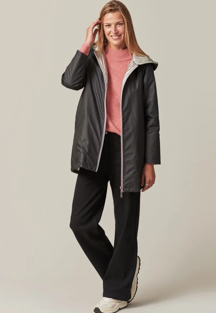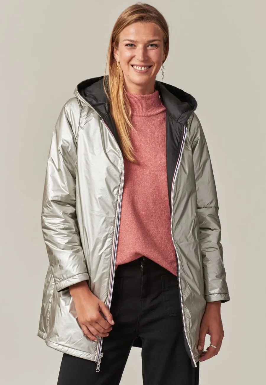 Ce manteau réversible, avec un côté brillant, vous permet de changer de look selon vos envies. Il est équipé d’une double fermeture éclair et de deux poches. Sa coupe droite s’adapte à toutes les morpholgies.
