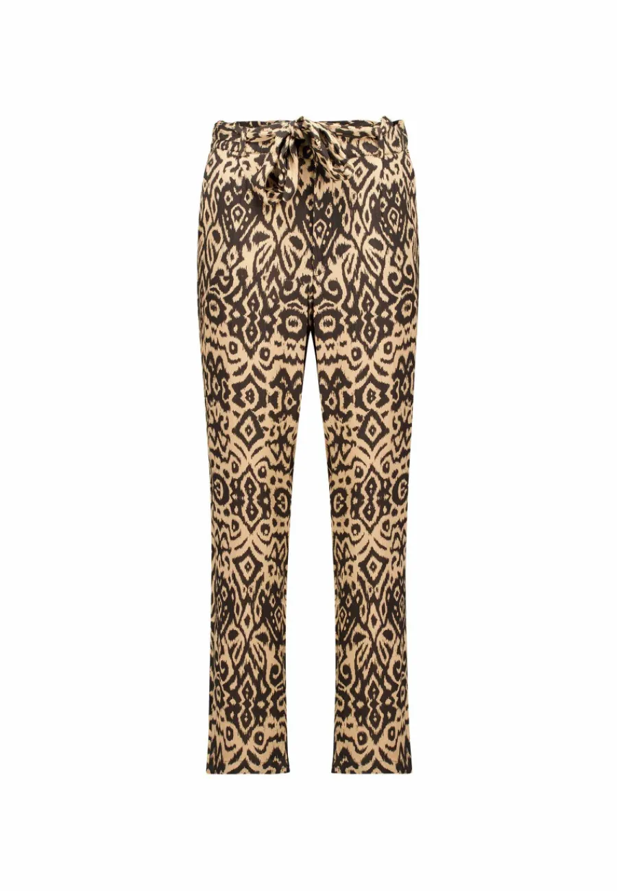 Confectionné en crêpe, ce pantalon fluide et léger arbore un motif ethnique, ajoutant une touche d’originalité et de caractère à votre tenue. Sa coupe chino combine élégance et confort, faisant de lui une pièce stylée et agréable à porter.