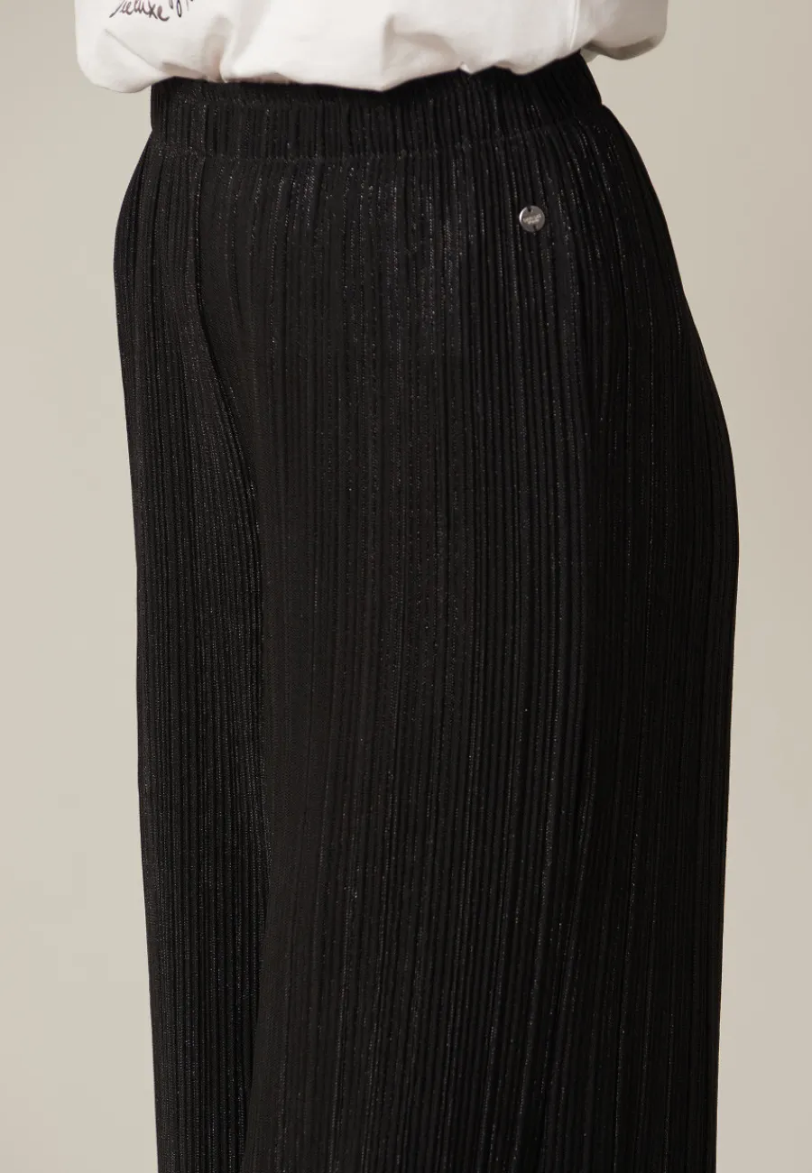 Avec ses jambes larges et sa taille élastique, ce pantalon pour femme offre un confort optimal. La silhouette est aérienne, idéale pour un look à la fois chic, professionnel et décontracté.