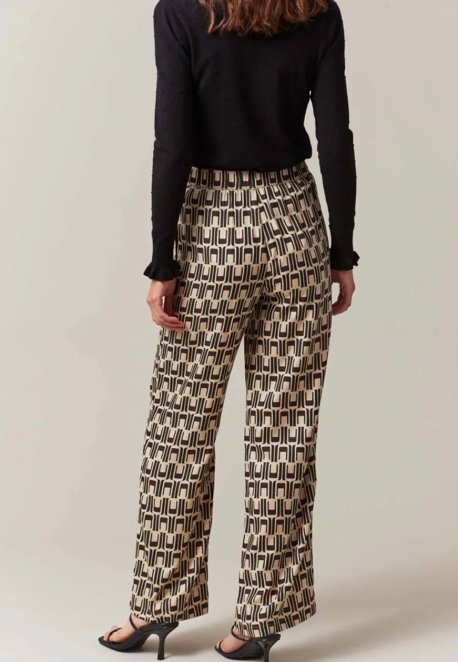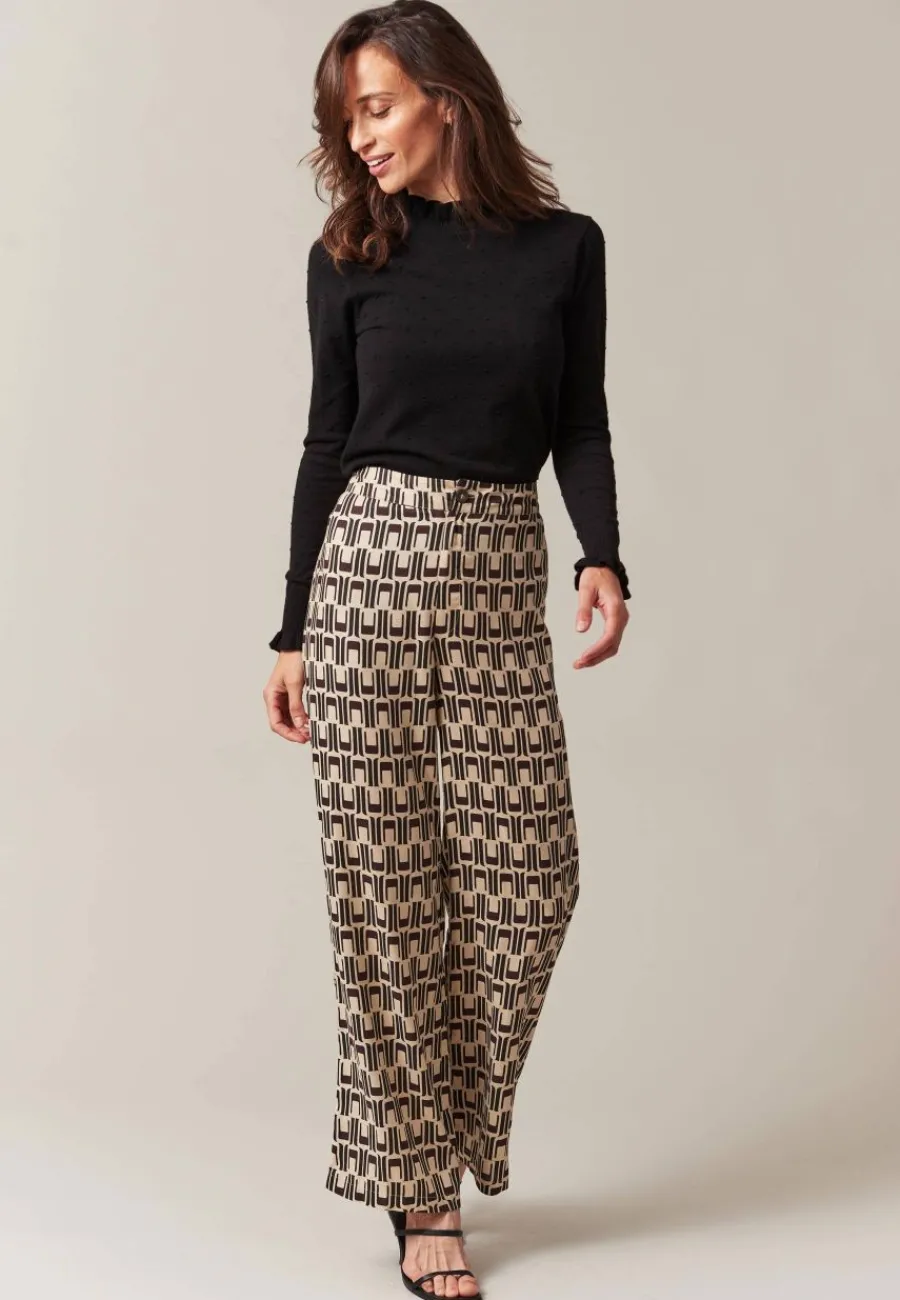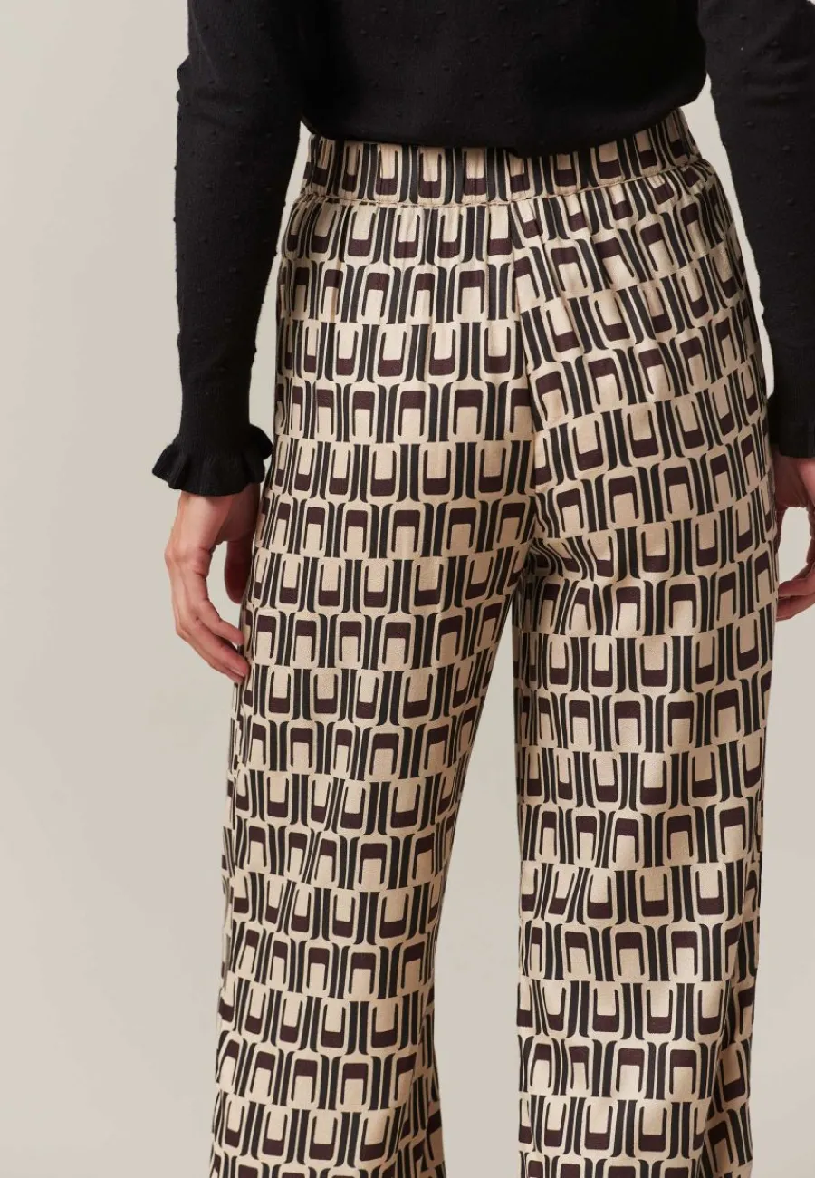 Le pantalon à motifs ZERIA se distingue par son design unique, inspiré des années 70. Subtilement rétro, il s’associe avec une blouse et une paire d’escarpins pour sublimer la femme moderne. Avec lui, élégance rime avec aisance.
