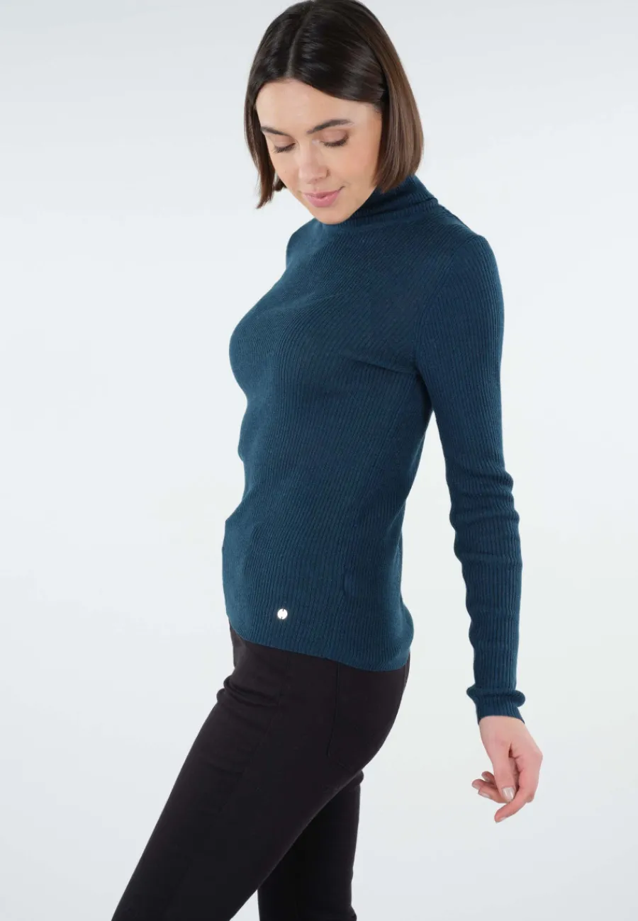 Ce modèle de pull casual pour femme est fabriqué à 44% de polyester, 30% d’acrylic et 20% de nylon. On l’aime avant tout pour son col roulé, son élégance et sa qualité. Ce pull est aussi disponible en coloris dark sand, berry, khaki et duck.