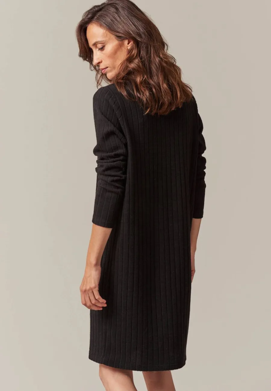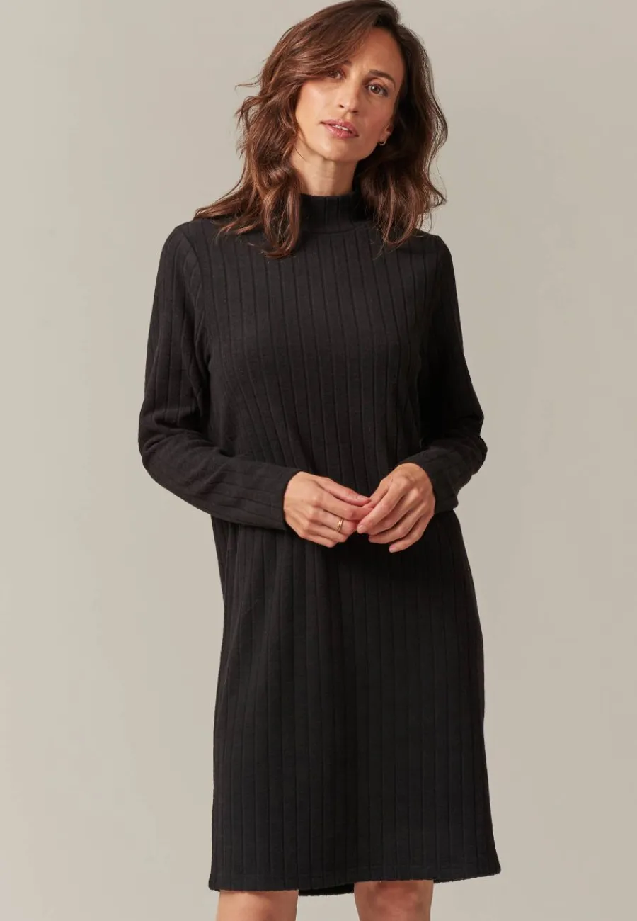 La robe Adia avec son col montant et sa texture chaleureuse vous tiendra chaud pour l’hiver.