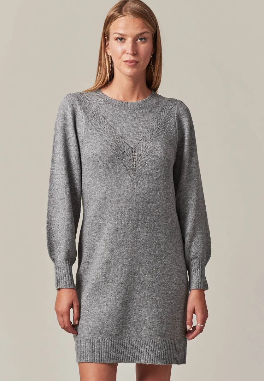 Ce modèle de robe pull à manches longues pour femme est fabriqué à 35% d’acrylic, 25% de polyester et 22% de polyester recyclé. On l’aime pour son design à manches courtes, son style casual et son col classique. Elle est aussi disponible en coloris vanille mel et grey mel.