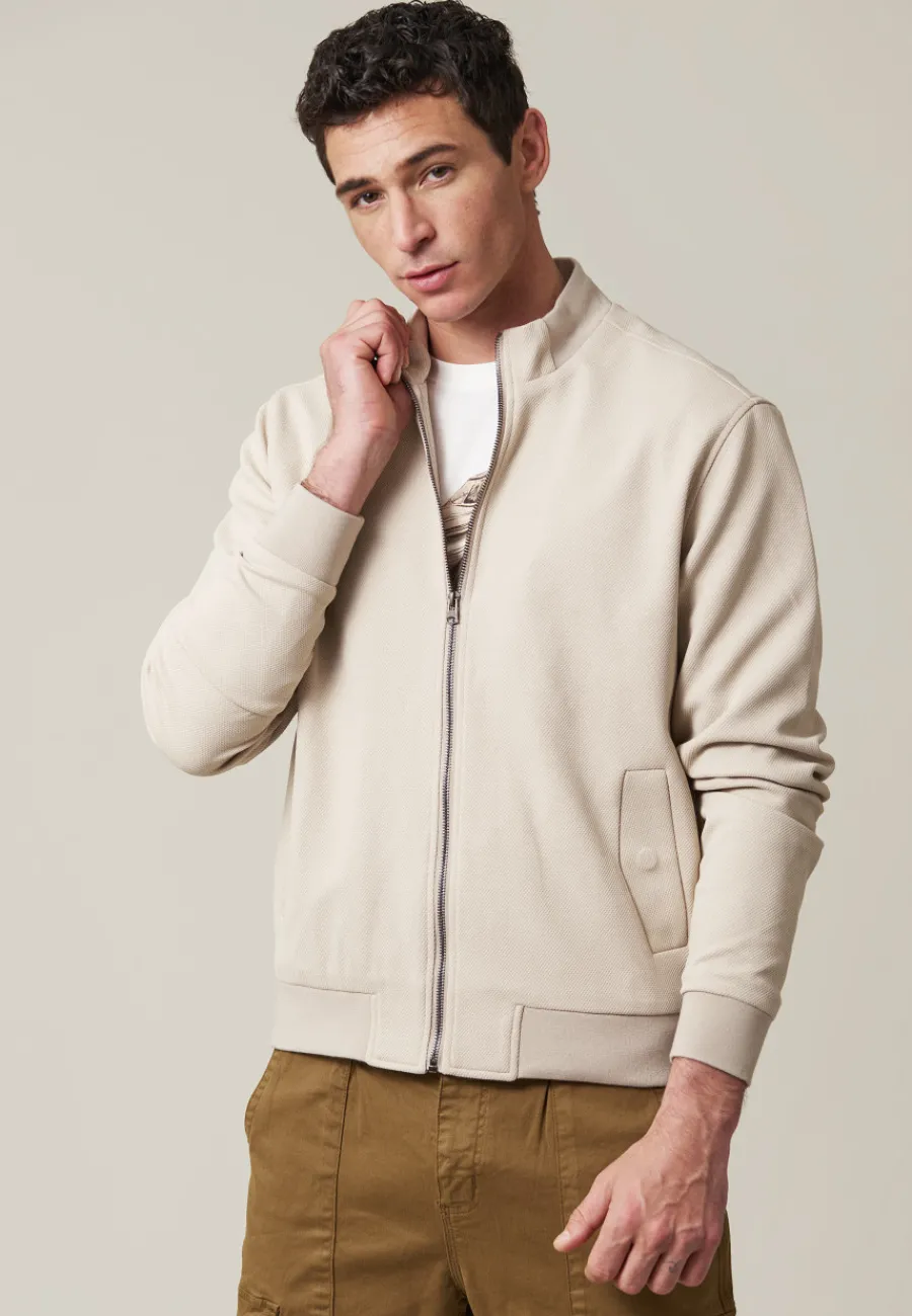 Confectionnée en tissu piqué, cette veste offre une coupe classique légèrement cintrée qui met en valeur la silhouette masculine. Son col montant souligne la mâchoire, ajoutant une touche sophistiquée à votre look.