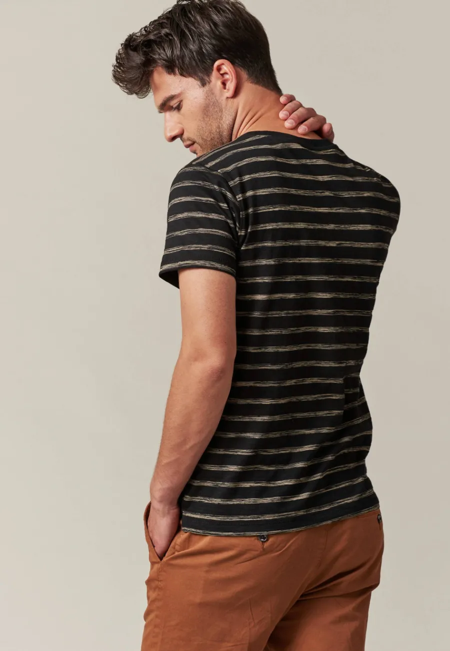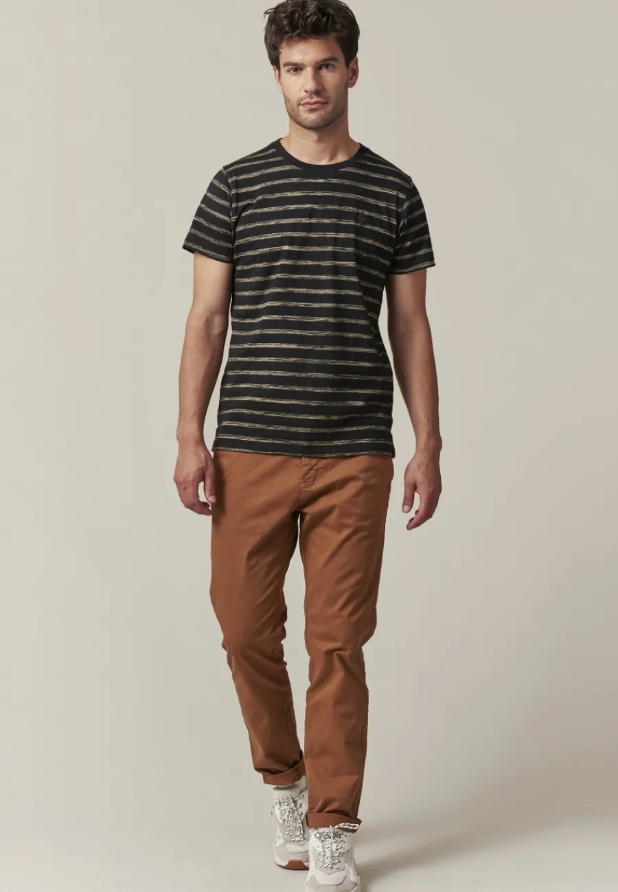 Ce t-shirt homme à rayures intemporelles, est composé de 89 % de coton, pour que vous vous sentiez à l’aise quelle que soit l’occasion. Goûtez au plaisir de porter ce basique chic avec un denim droit ou un slim.