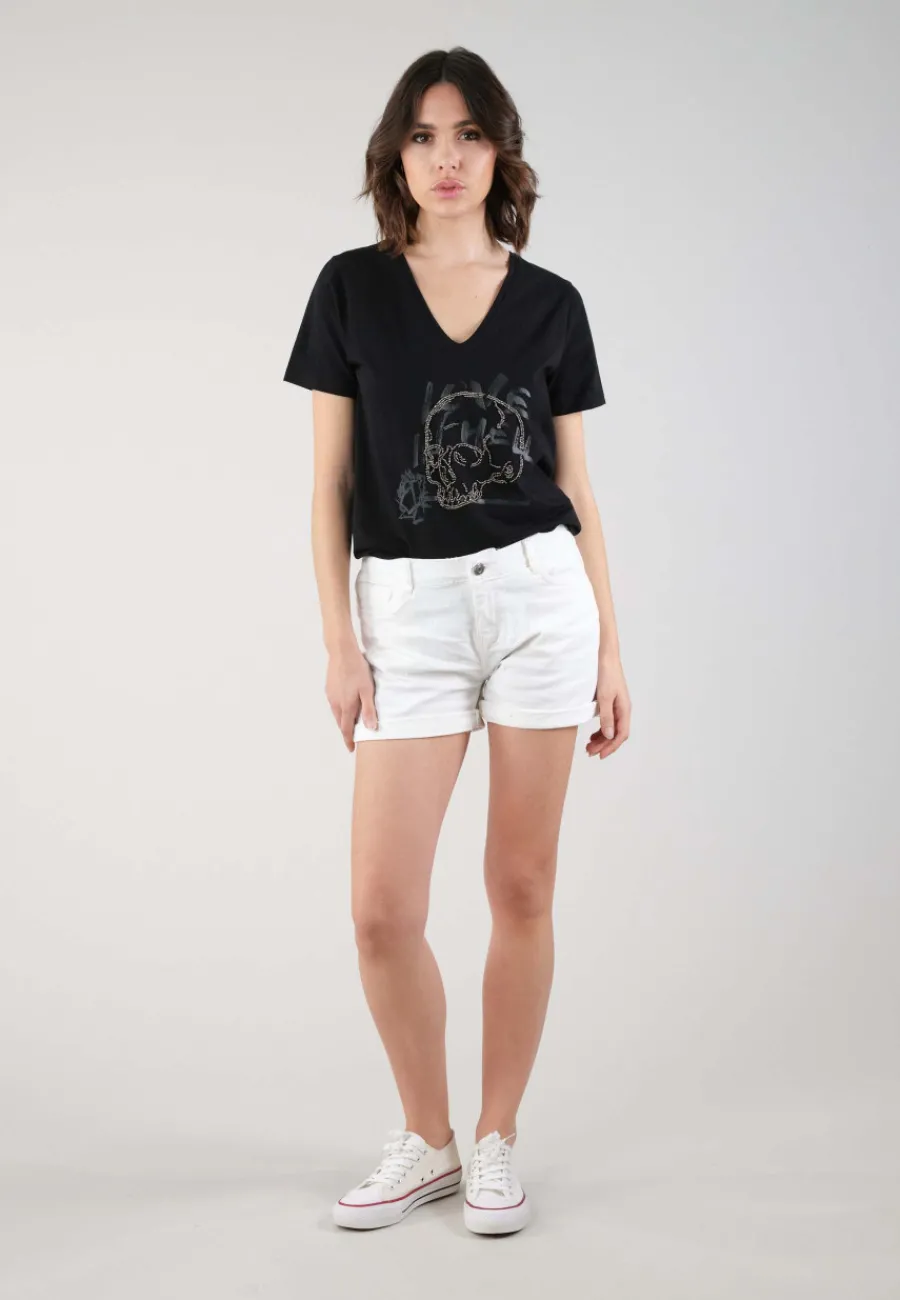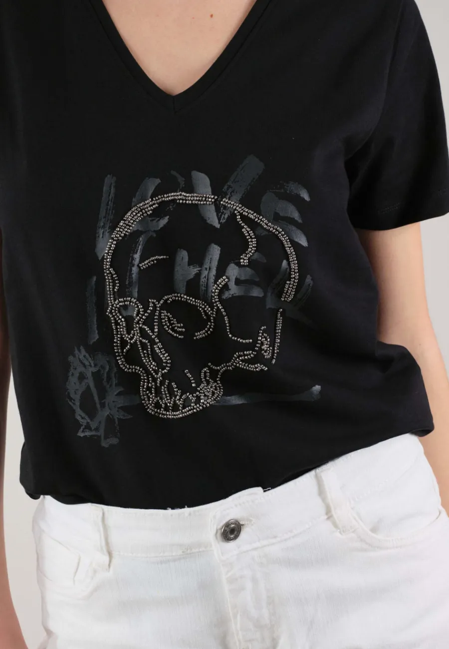 Ce T-shirt pour femme HELLAS se distingue par son imprimé graphique motif tête de mort et son col en V.