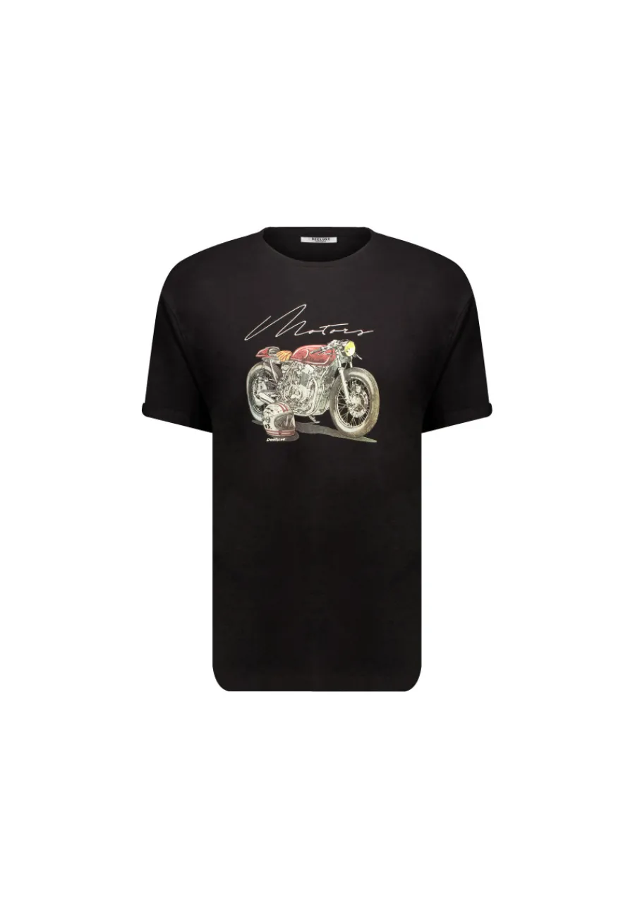 Adoptez un style audacieux avec notre t-shirt MOTORCYLCE. Ce modèle à la coupe droite et aux manches courtes est parfait pour un look décontracté tout en étant tendance. Sur le devant, une illustration vintage d’une moto accompagnée d’un casque attire tous les regards, tandis que l’inscription « Motors » au-dessus ajoute une touche de caractère.