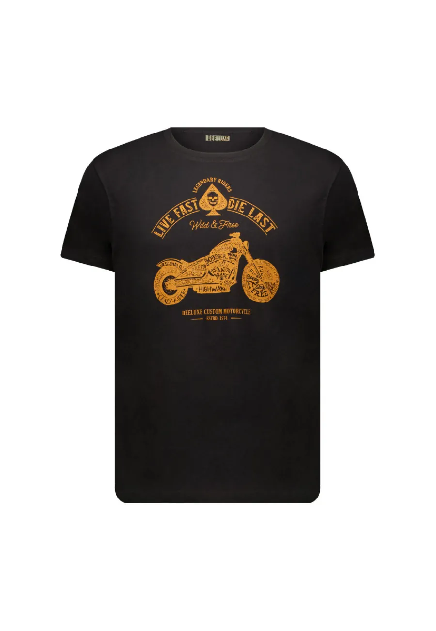Le design de ce t-shirt se distingue par un motif vif mettant en avant une moto stylisée. Les inscriptions « Wild & Free » ajoutent une touche d’audace et de liberté, tandis que la tête de mort emblématique de DEELUXE, intégrée dans un motif AS, apporte une touche originale.