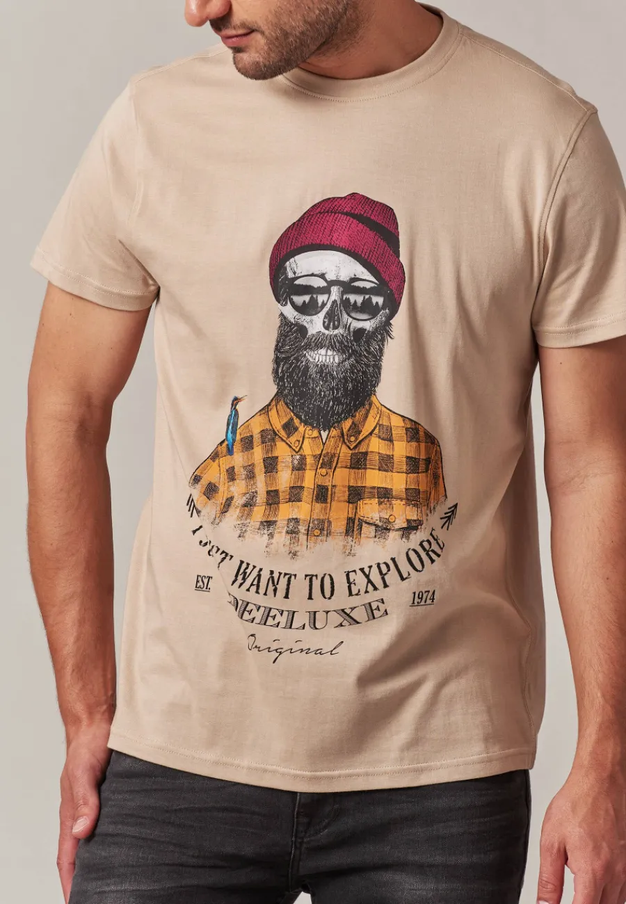 Avec sa coupe régulière, ses manches courtes et son col rond, le T-Shirt TELLSON offre un ajustement parfait pour une utilisation quotidienne. Le motif de tête de mort vient ajouter une touche d’audace à votre tenue.