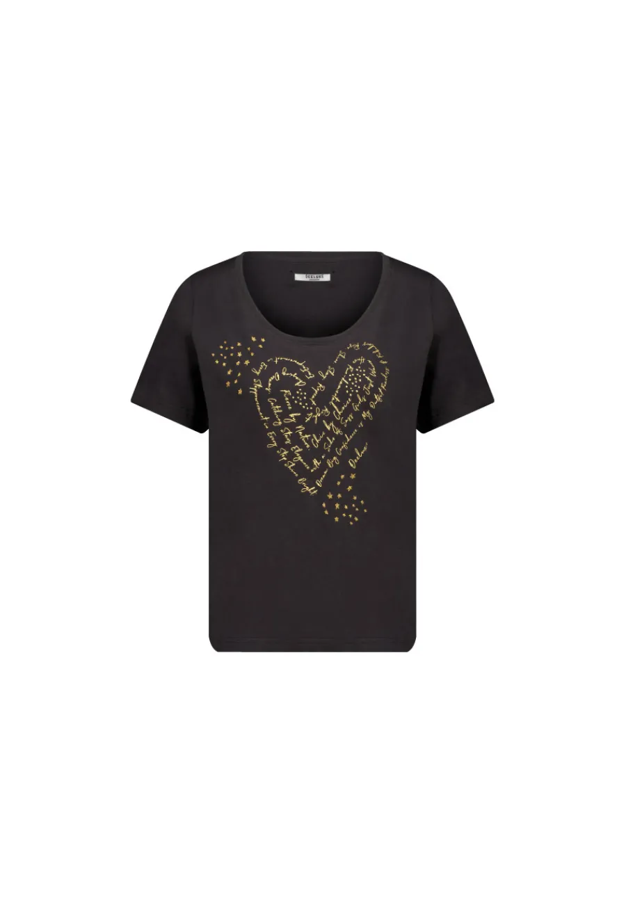 Le t-shirt à manches courtes VENUS incarne le style décontracté. Confectionné en jersey, il arbore un motif imprimé avec un effet brillant qui capte la lumière. Ses manches avec ourlet et son col rond offrent une coupe classique et confortable, idéale pour une journée de repos.