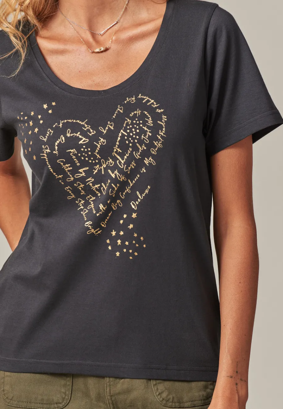Ce t-shirt pour femme porte une citation positive et inspirante. Parfait pour exprimer une énergie positive, il se marie facilement avec un jean ou un short pour un look simple et chic au quotidien.